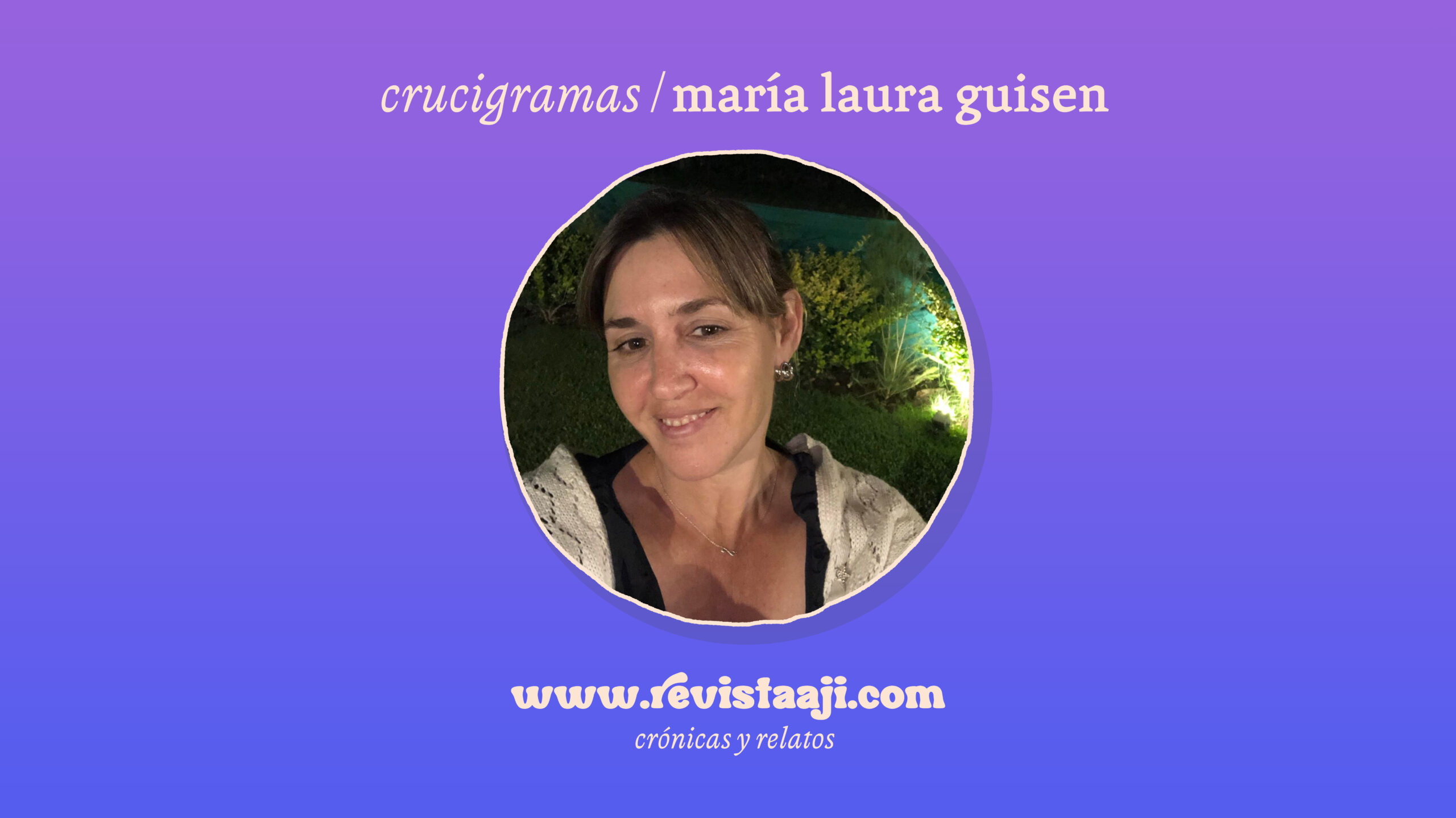 Mi nombre es María Laura Guisen. Nací en Rosario en 1973. Soy Psicóloga y ejerzo desde hace muchos años mi profesión en ésta ciudad, tanto en ámbitos Institucionales como es mi consultorio. Siempre he sido una lectora apasionada. Este año finalice un ciclo de tres años de Taller de escritura creativa con Marcelo Scalona, escritor y docente, además de cursos realizados con él sobre Literatura Argentina, y Poesía de Alejandra Pizarnik. Participé este año de un Curso de Escritura de cuento y clases teóricas sobre Estructuras Narrativas, dictados por Pablo Colacrai, también docente y escritor Rosarino. Comencé a escribir relatos y poesía hace aproximadamente un año y medio, en el marco del Taller antes mencionado y desde ese momento no me detuve. He perseguido con mis relatos y poemas a compañeros, docentes, parientes y amigos, que han acompañado con generosidad y cariño en este deseo por la escritura. Me gustaría tener la posibilidad de compartir mis producciones con otros apasionados lectores y escritores