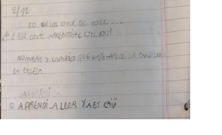 Estaba siendo realmente difícil llevar adelante la propuesta, varixs no querían trabajar, se molestaban, se pegaban, salían del aula, se iban corriendo, se insultaban. Hace varios días que el grado venía así, dándole de morfar al enunciado masivo institucional “hay que ver quién agarra este grado el año que viene”. A su vez, era la tercera clase que le destinábamos a la actividad ya que las dos anteriores también había sido difícil sostenerla. Después de muchos intentos de ir por un lado, por el otro, me harté, volví al esquema tradicional. Rompí los grupos, retiré las hojas de registro colectivo, les ordené que se sentaran cada unx en su lugar y que copien del pizarrón. La consigna era que anoten en la carpeta qué habían aprendido en el año y que enumeren tres cambios que había traído la pandemia a la escuela. No pretendía ninguna producción rimbombante, sólo quería que la clase “se ordene”. Generar una suerte de ruptura que luego permita seguir. Algo de efecto tuvo, la mayoría del grado se puso a copiar. Mis músculos de chofer docente me agradecieron que luego de tantos km de ruta hayamos hecho esa parada en la Estación de Servicio del Silencio para estirar las patas, ir al baño y cambiar el CD repetido. Todxs estábamos más tranquilxs, excepto B, que seguía en modo “¿cuándo llegamos? ¡estoy aburrido!”. Y yo que no lograba encontrar el modo de que baje un cambio, se relaje y mire por la ventanilla.